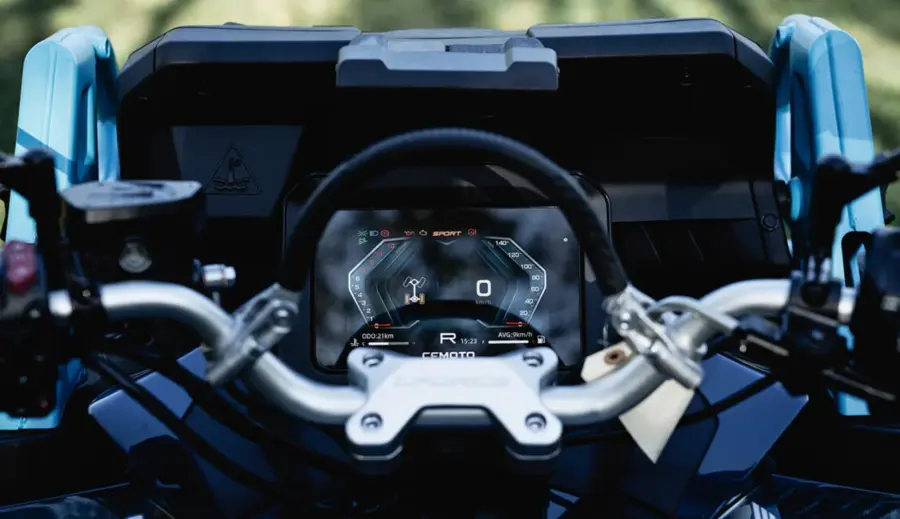 T-Box (voliteľné) umožňuje prepojenie so smartfónom cez aplikáciu CFMOTO RIDE, čo znamená okamžitý prístup k palubným údajom v reálnom čase napr.: množstvo paliva, stav batérie, záznam o jazde, samodiagnostika vybraných základných funkcií pred jazdou.
